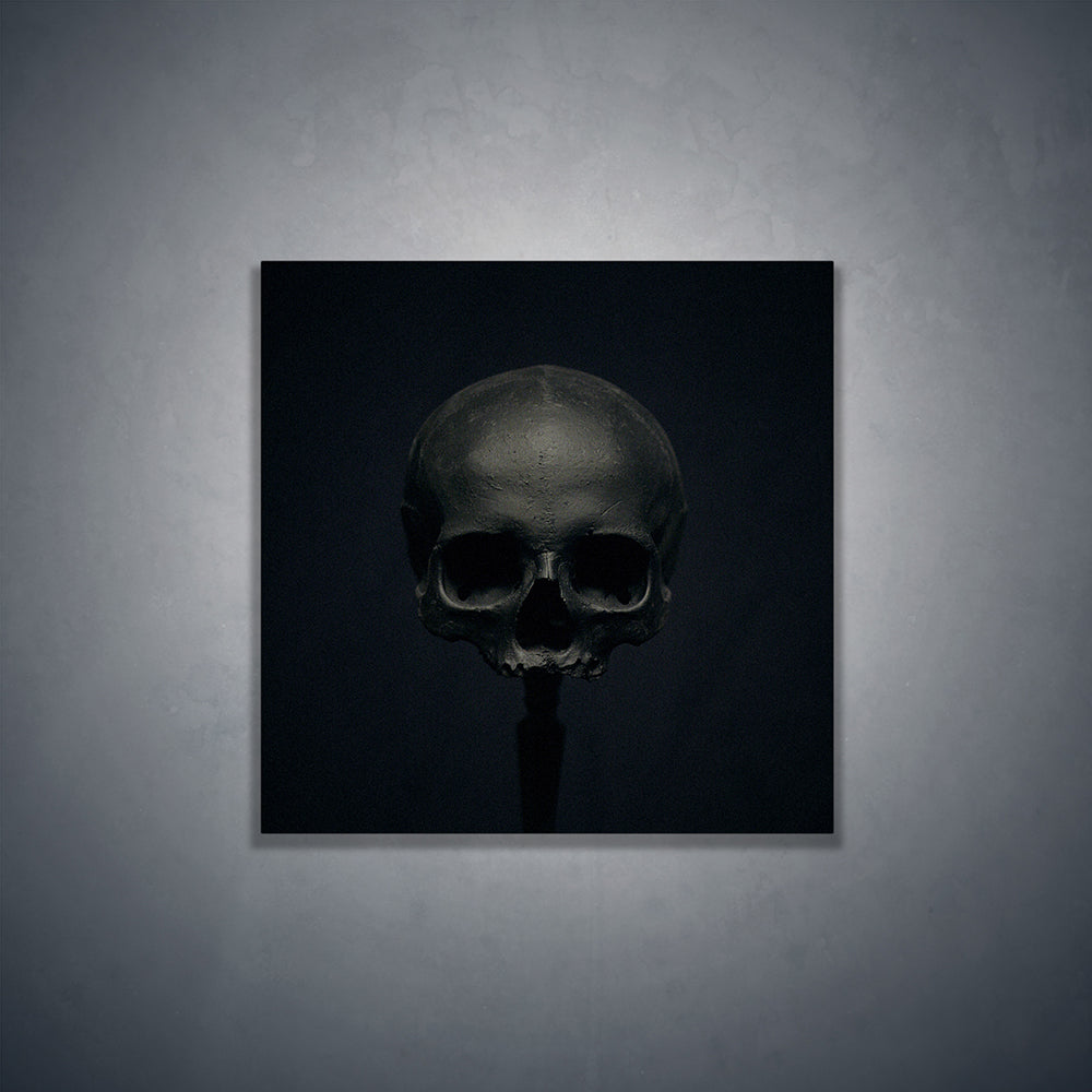 Black skull, real human skull photography - Square art print