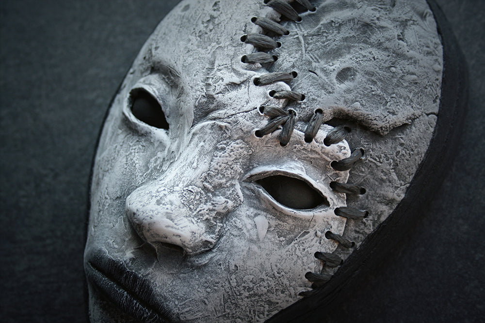 Ceramic sculpture mask "Stitched together" - SCULPTURE