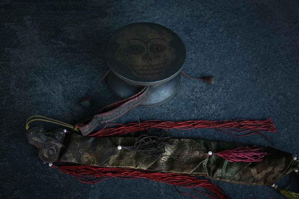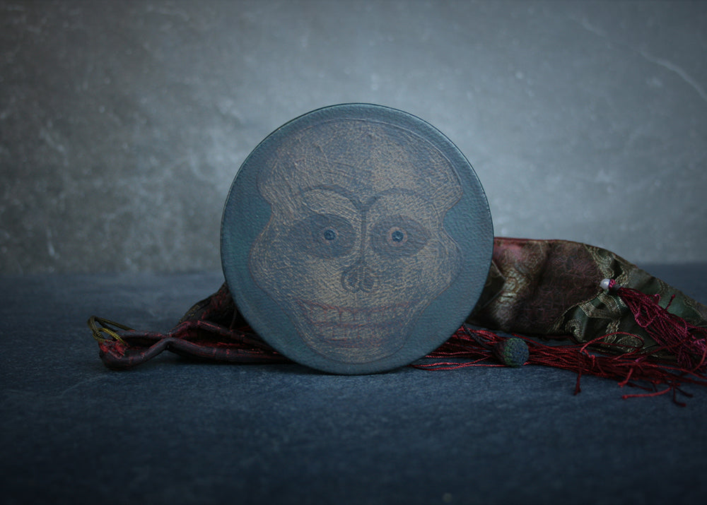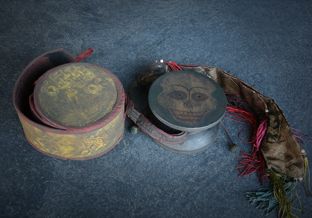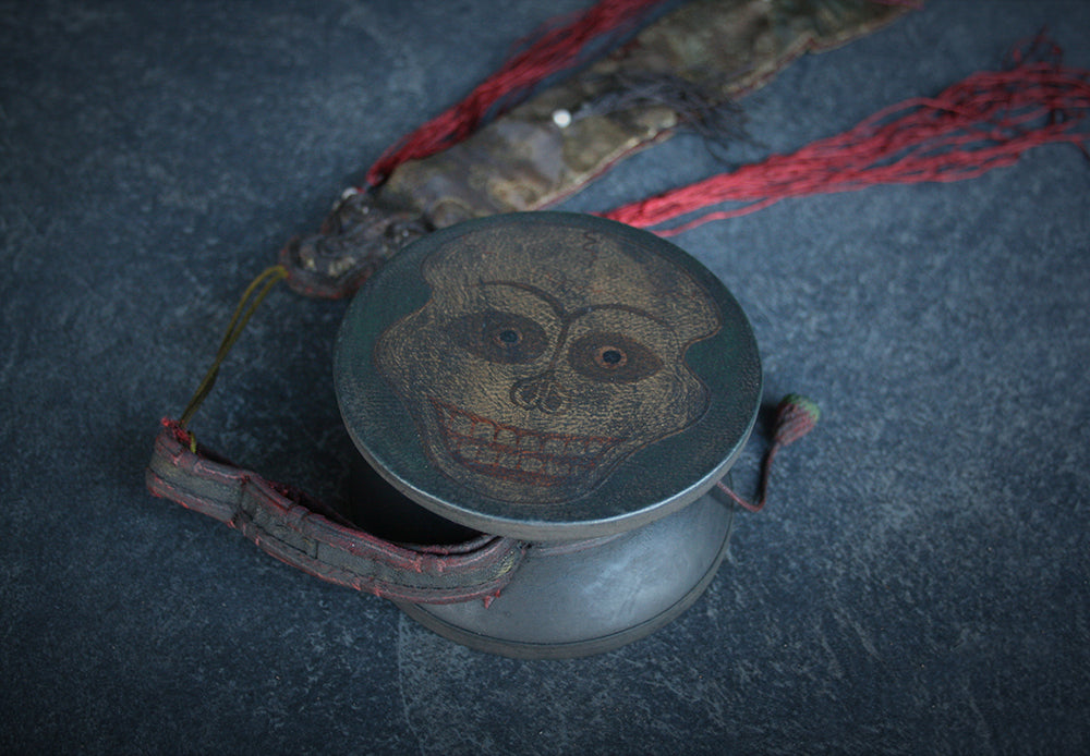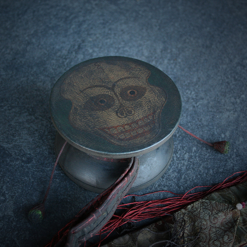 Damaru, Ceremonial Tibetan Buddhist drum, skull version - RITUAL ITEM