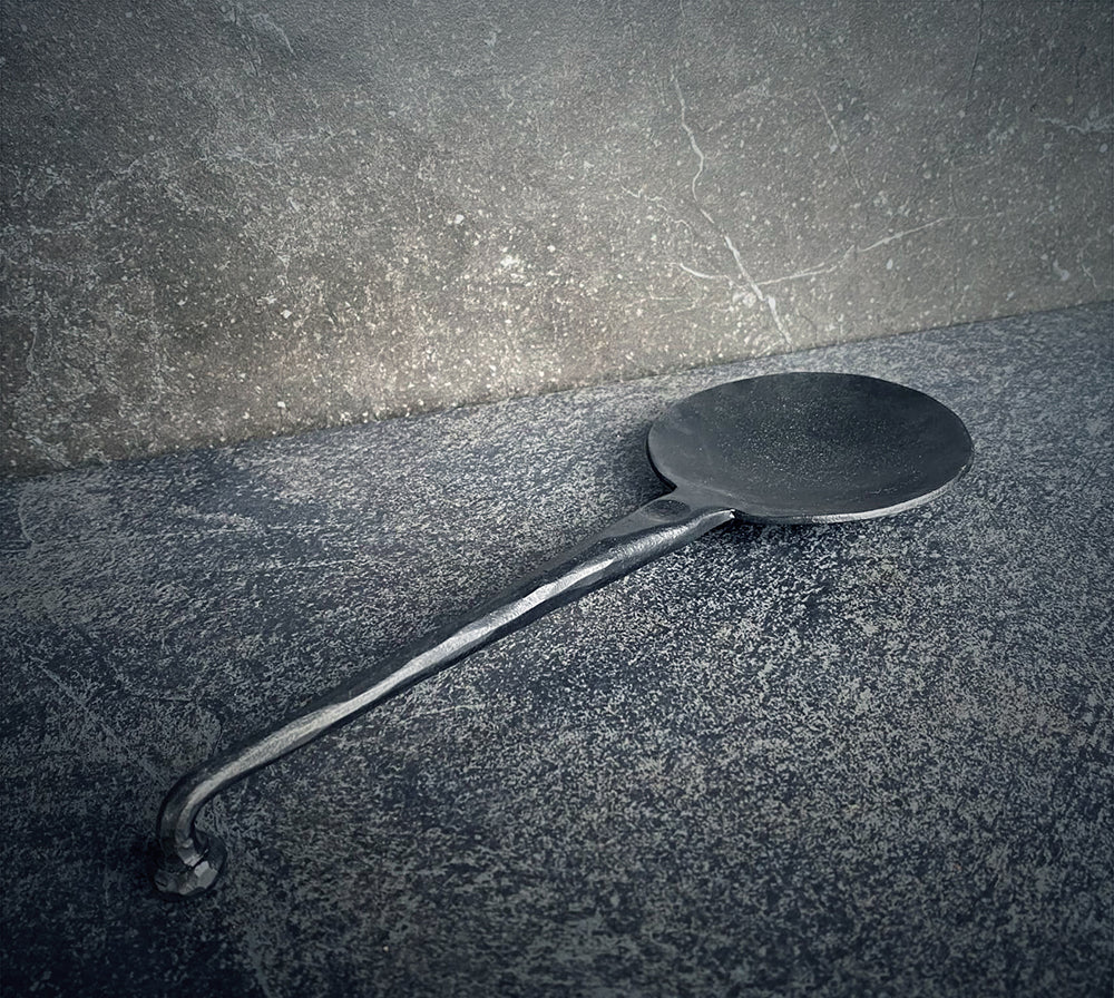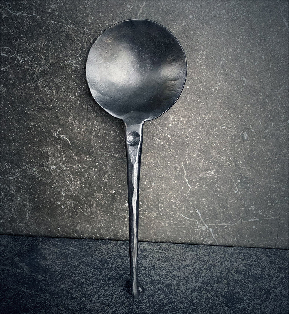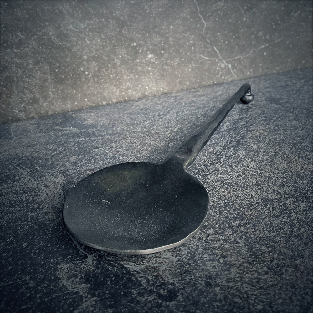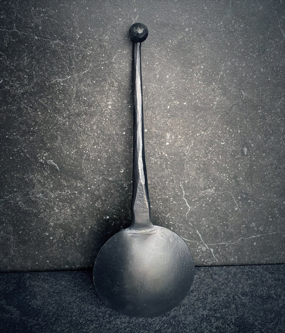 Forged spoon made of iron after a model from the Viking Age, Sweden. The spoon has a length of approx. 245 mm. This item can be used in your everyday kitchen or for any altar purposes.
