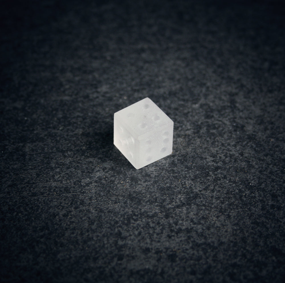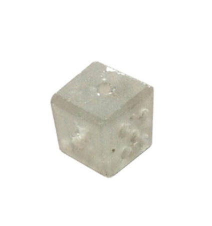 Dice made in uncolored glass based on a model from the Viking Age. Length, width and height are approx. 15 mm.