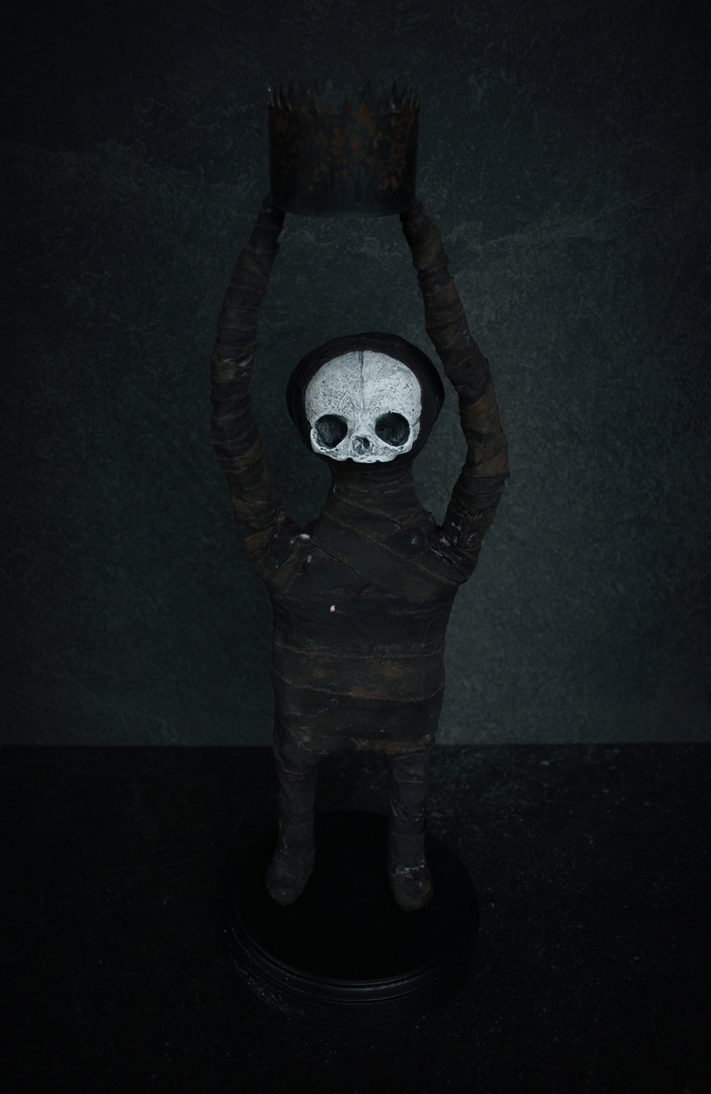 Mixed media sculpture. Hand made wooden base. Comes signed by the artist.