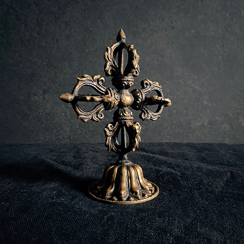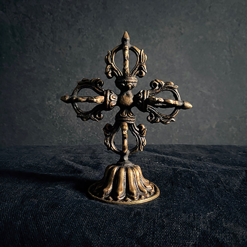 Standing Double Dorje / Vajra, antique brass style - RITUAL ITEMS