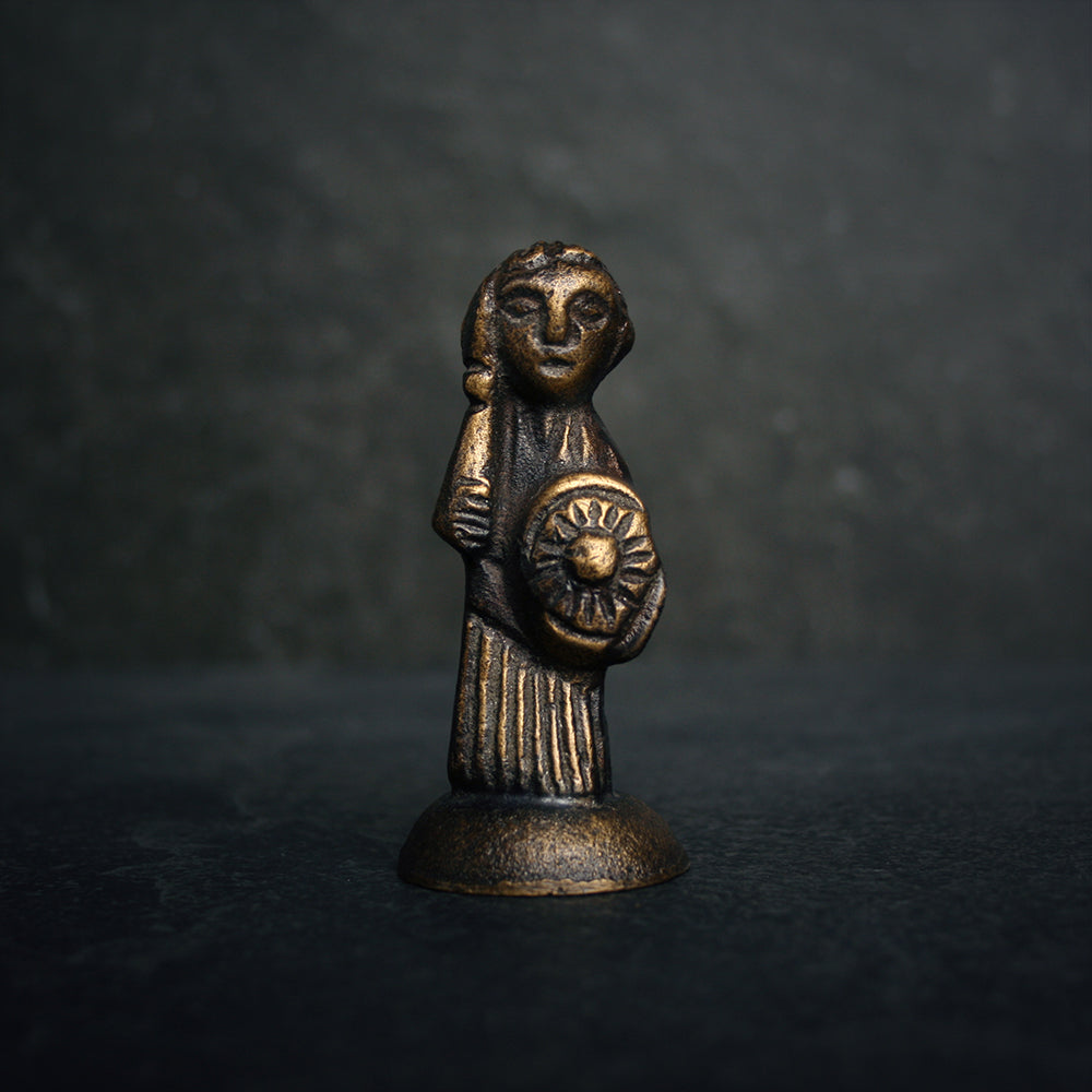 Valkyrie made of patinated brass after a model from Hårby, Denmark, Viking Age.