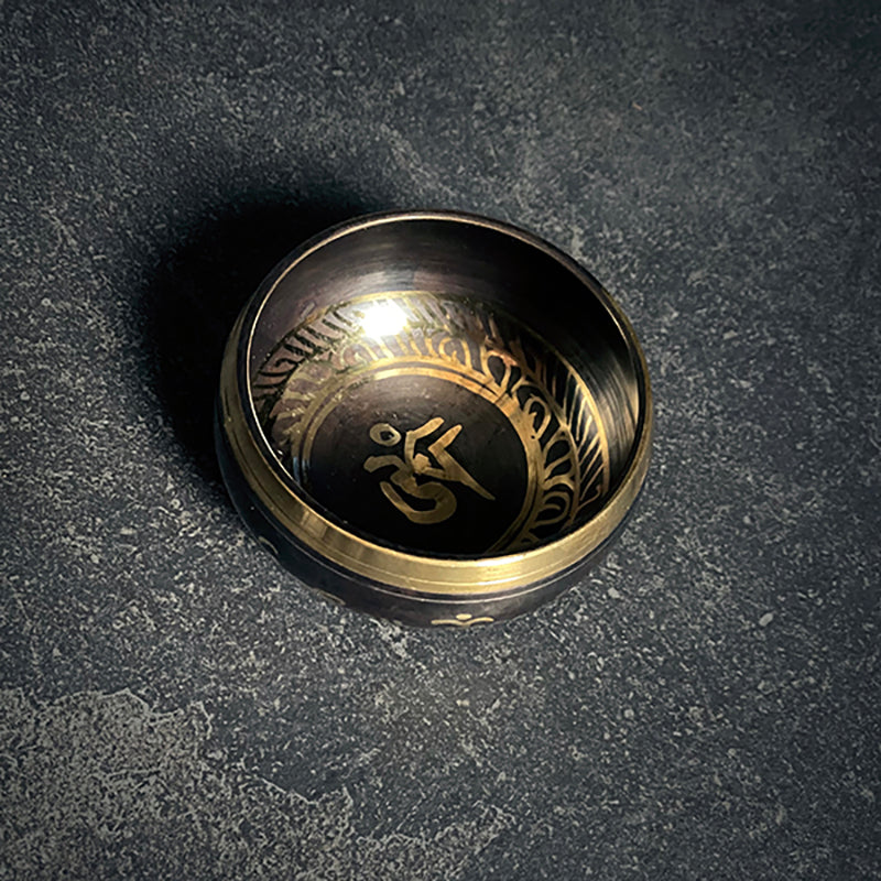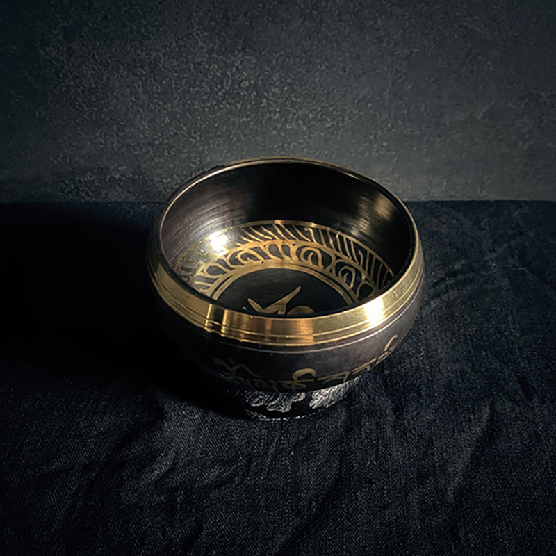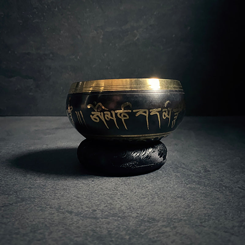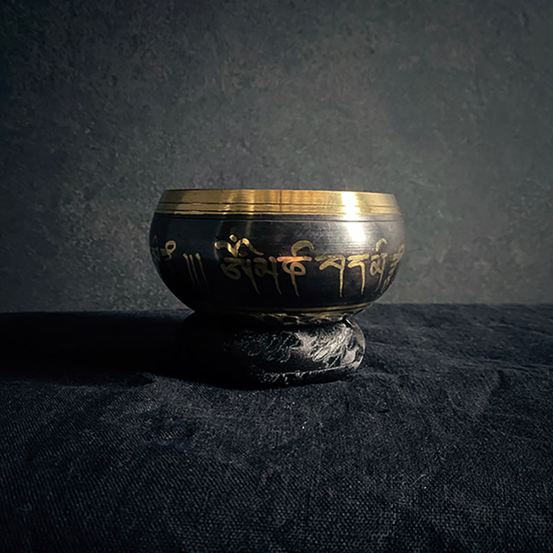 Tibetan singing bowl set, standing bell, black patina edition - RITUAL ITEM