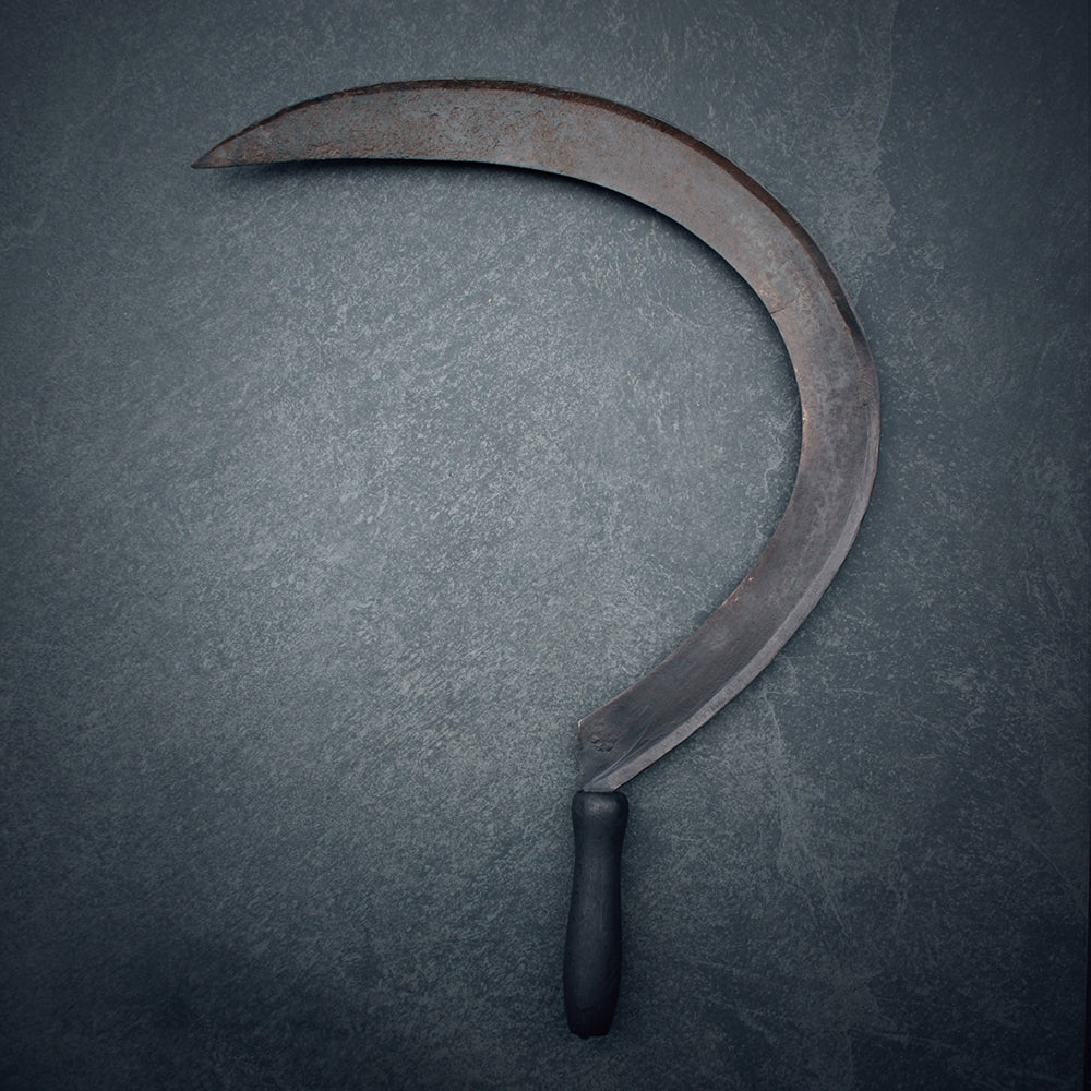 These are hand forged sickles. Representing harvest and death, this item aged with rich history goes perfect on your altar.