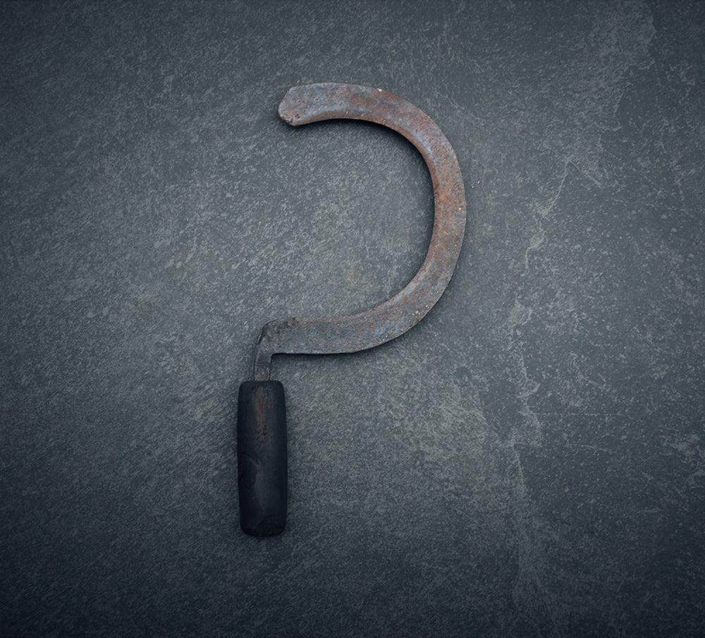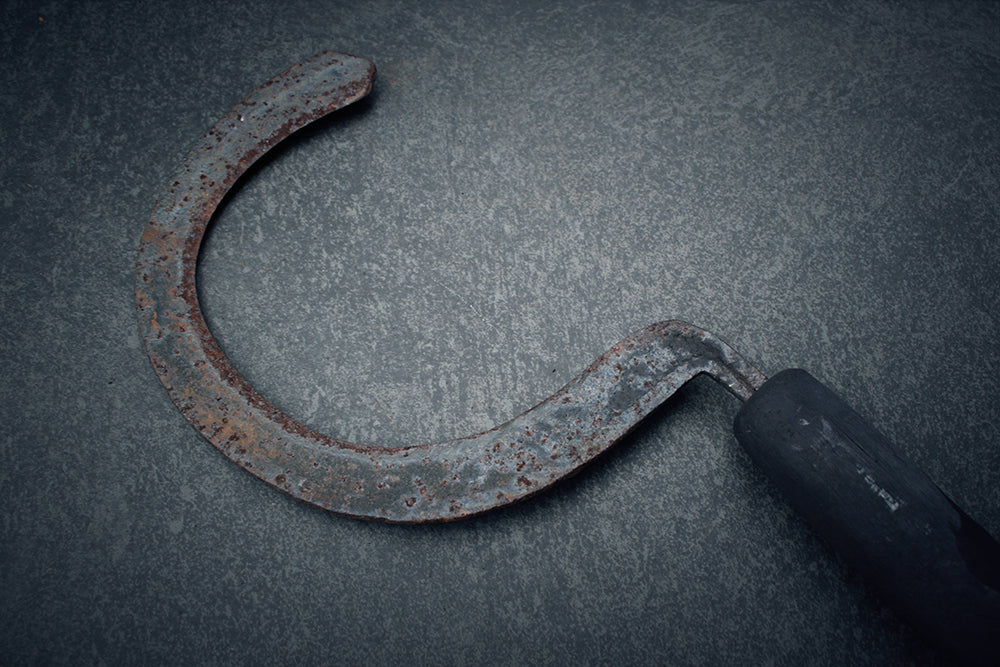 These are hand forged sickles. Representing harvest and death, this item aged with rich history goes perfect on your altar.